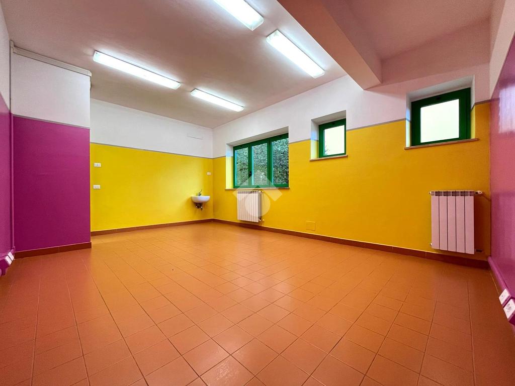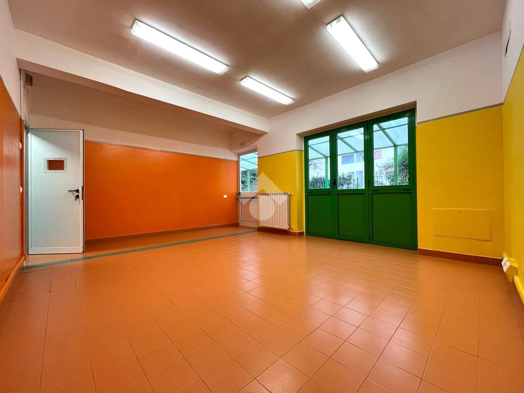 Proponiamo in affitto un locale di circa 400 mq, completamente ristrutturato, comprensivo di rifacimento degli impianti elettrico e idrico, situato al primo piano di un edificio che ospita al piano terra un asilo.