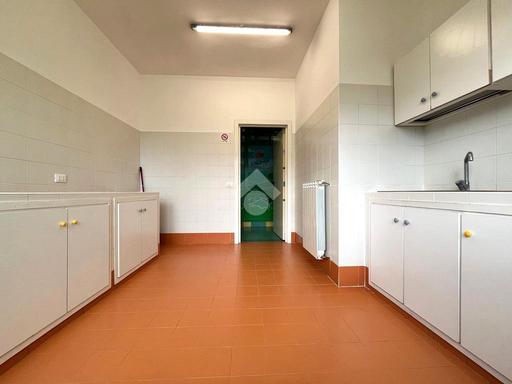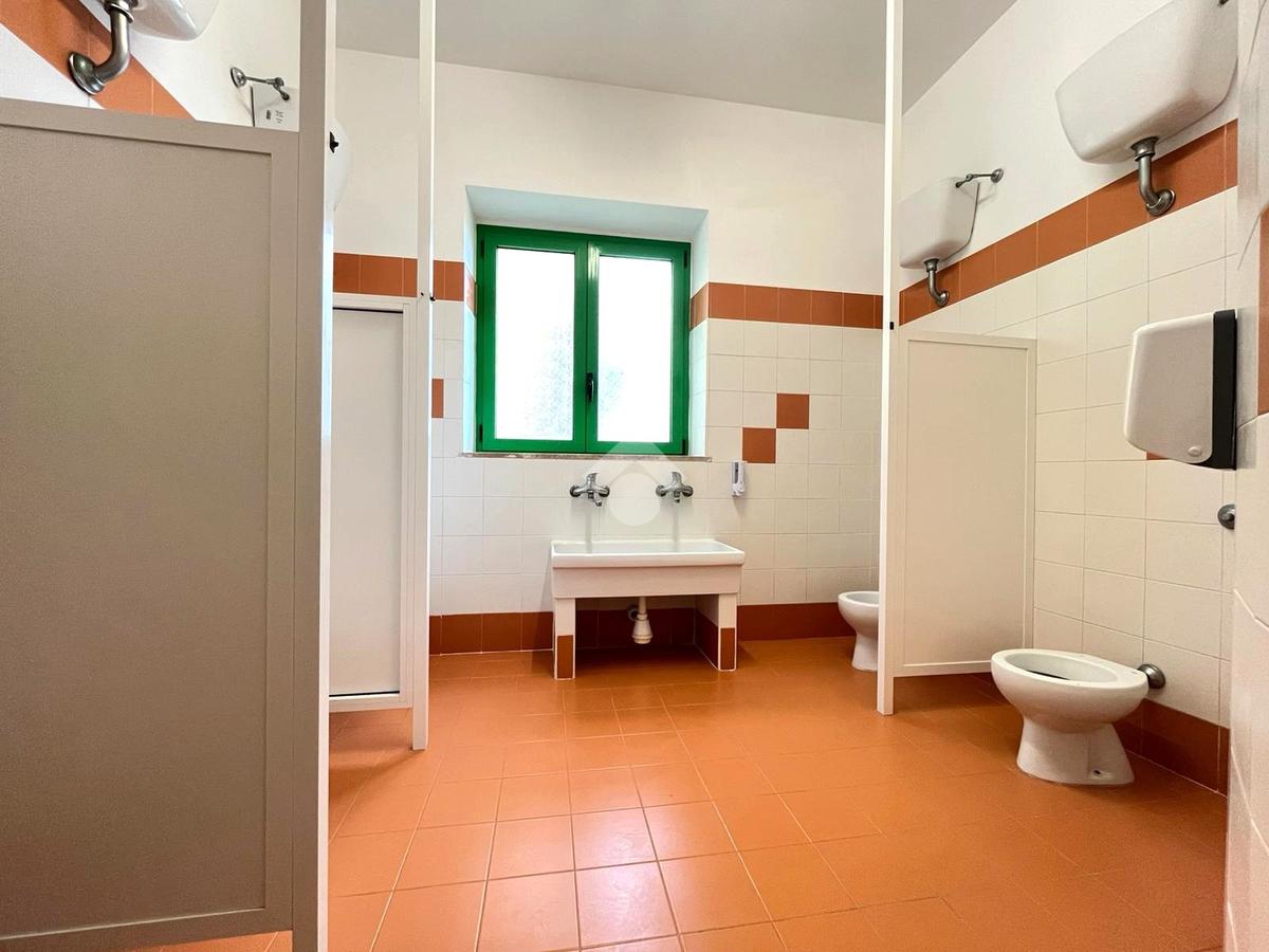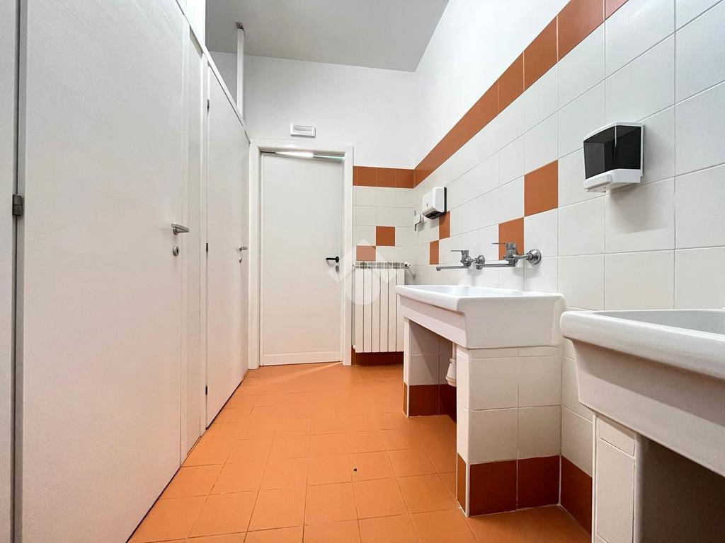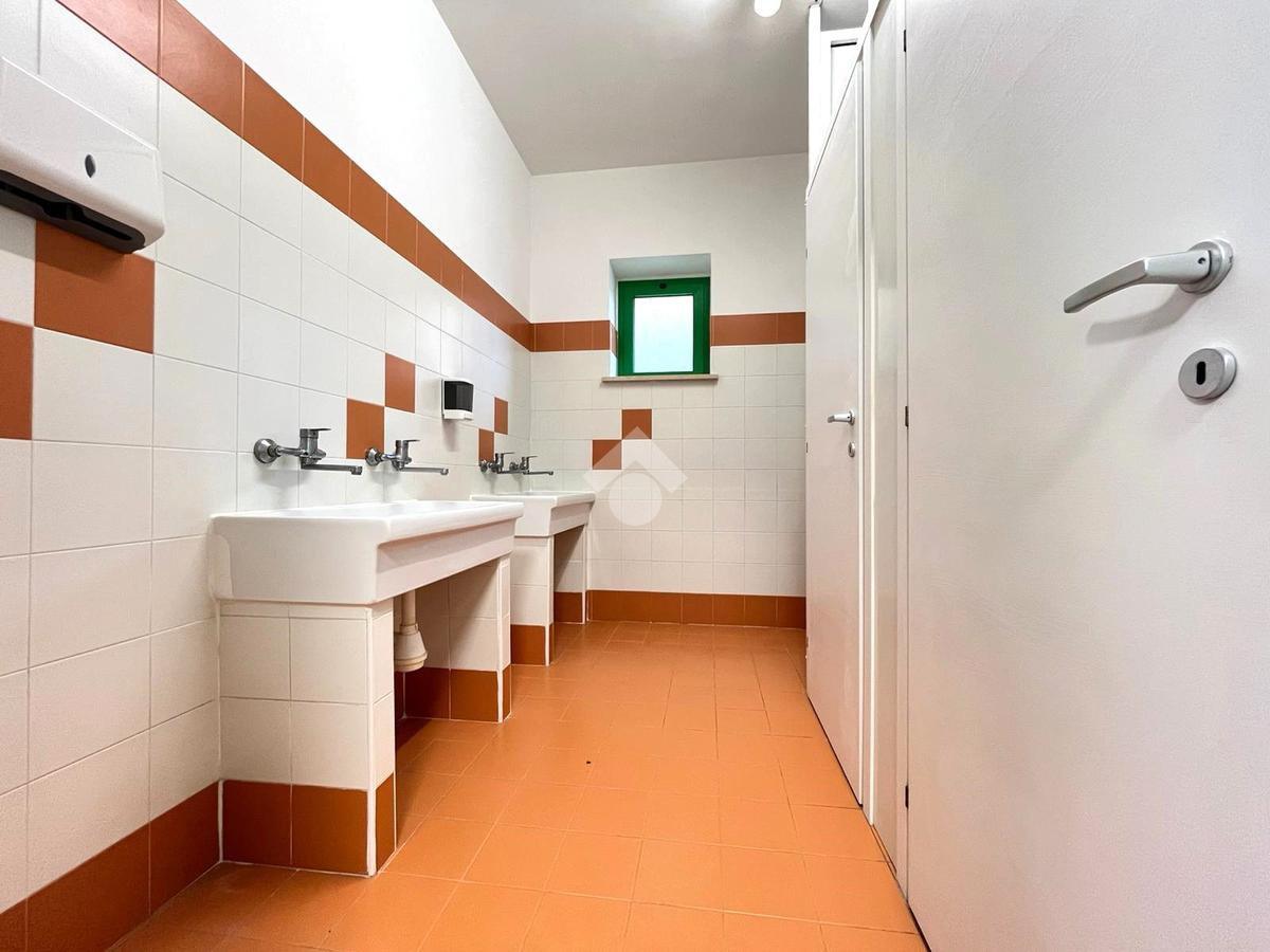 L’immobile è composto da 8 stanze, alcune delle quali dotate di lavabo; una di queste dispone inoltre di accesso diretto a un balcone privato. Sono presenti una cucina con balcone, un ripostiglio ad uso del personale e 4 bagni: uno a norma per disabili, uno riservato al personale e due ad uso pubblico, di cui uno attrezzato per bambini con sanitari di dimensioni ridotte.