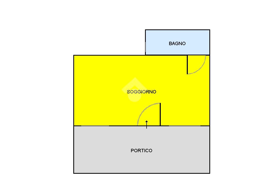 Passando attraverso un grazioso portico si accede all'interno dell'abitazione, composta da un ampio salone open-space e un bagno finestrato dotato di box doccia.