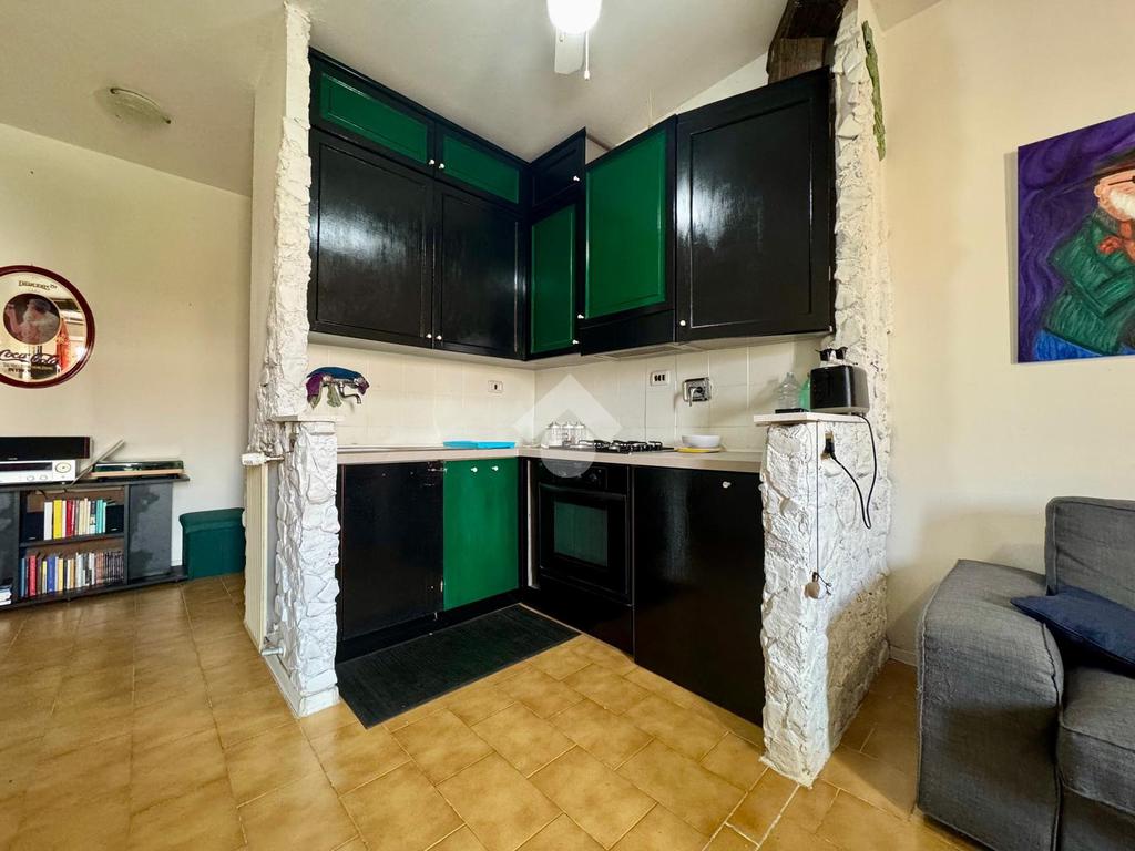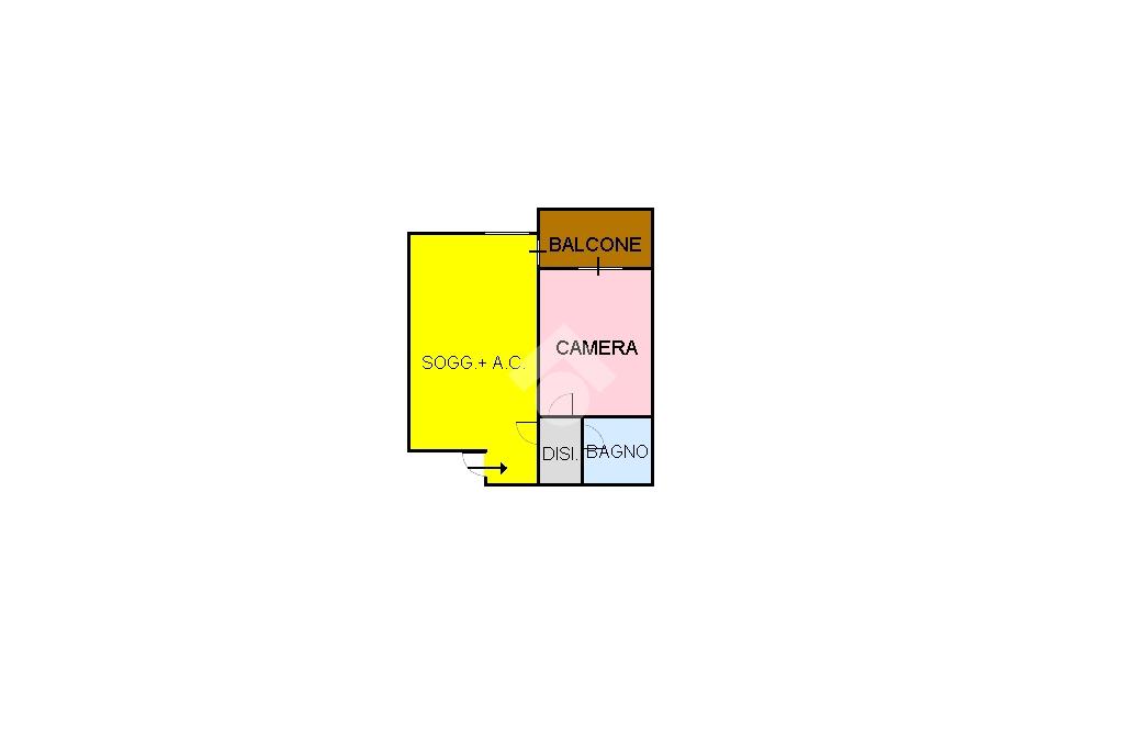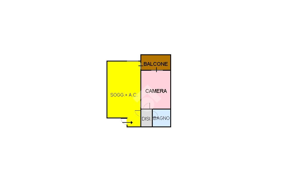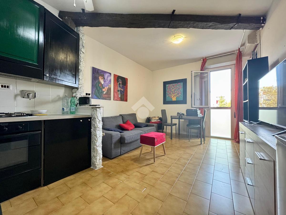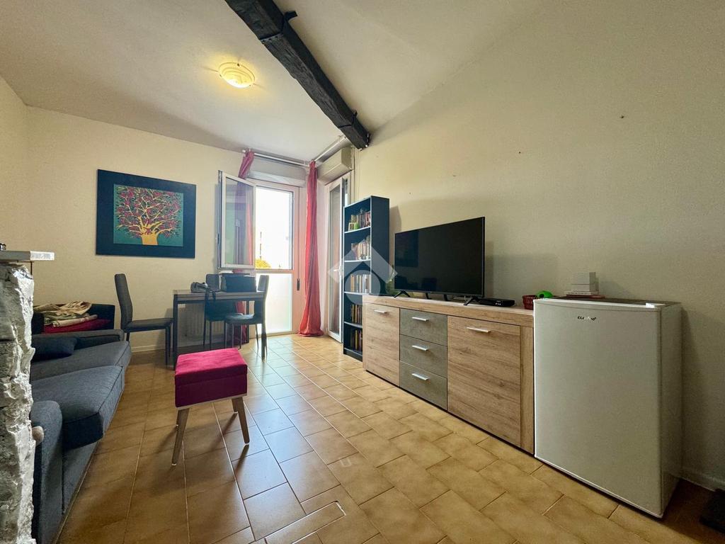 L'ingresso si apre su un luminoso soggiorno con angolo cottura, ambiente accogliente e funzionale, dal quale si accede direttamente al balcone.