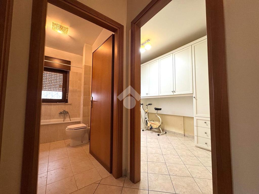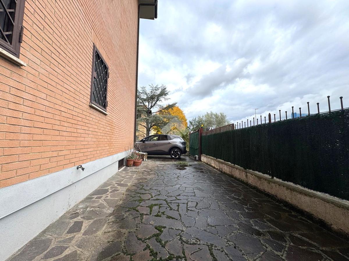 L’appartamento gode inoltre di un accesso indipendente dalla corte esterna pavimentata, che consente l’ingresso e il parcheggio di più autovetture.