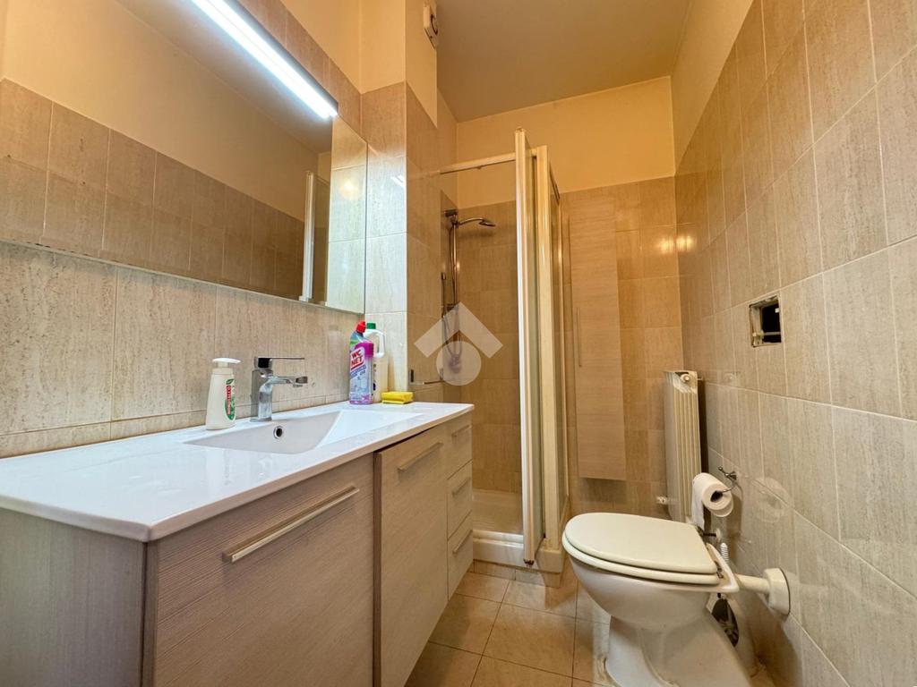 Un comodo disimpegno introduce la zona notte, composta da: due camere da letto, di cui una matrimoniale e due servizi, uno finestrato con vasca e l’altro dotato di areazione interna e box doccia.
