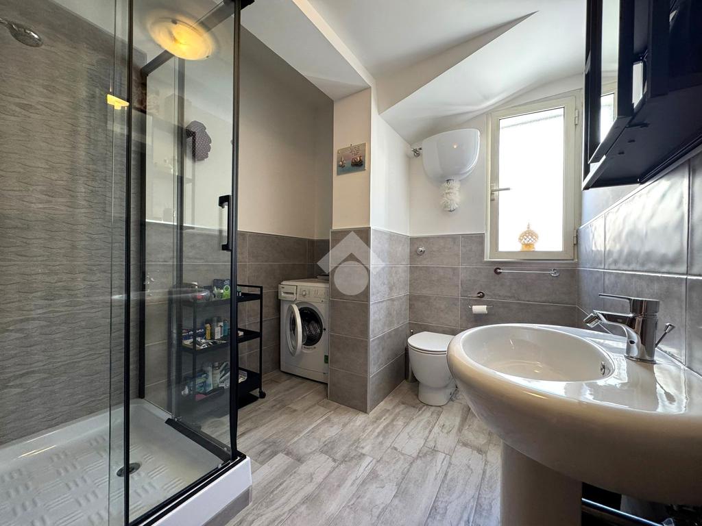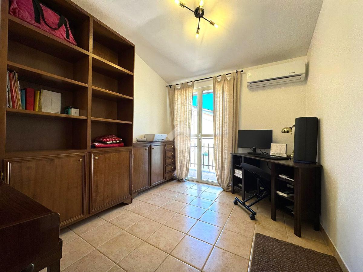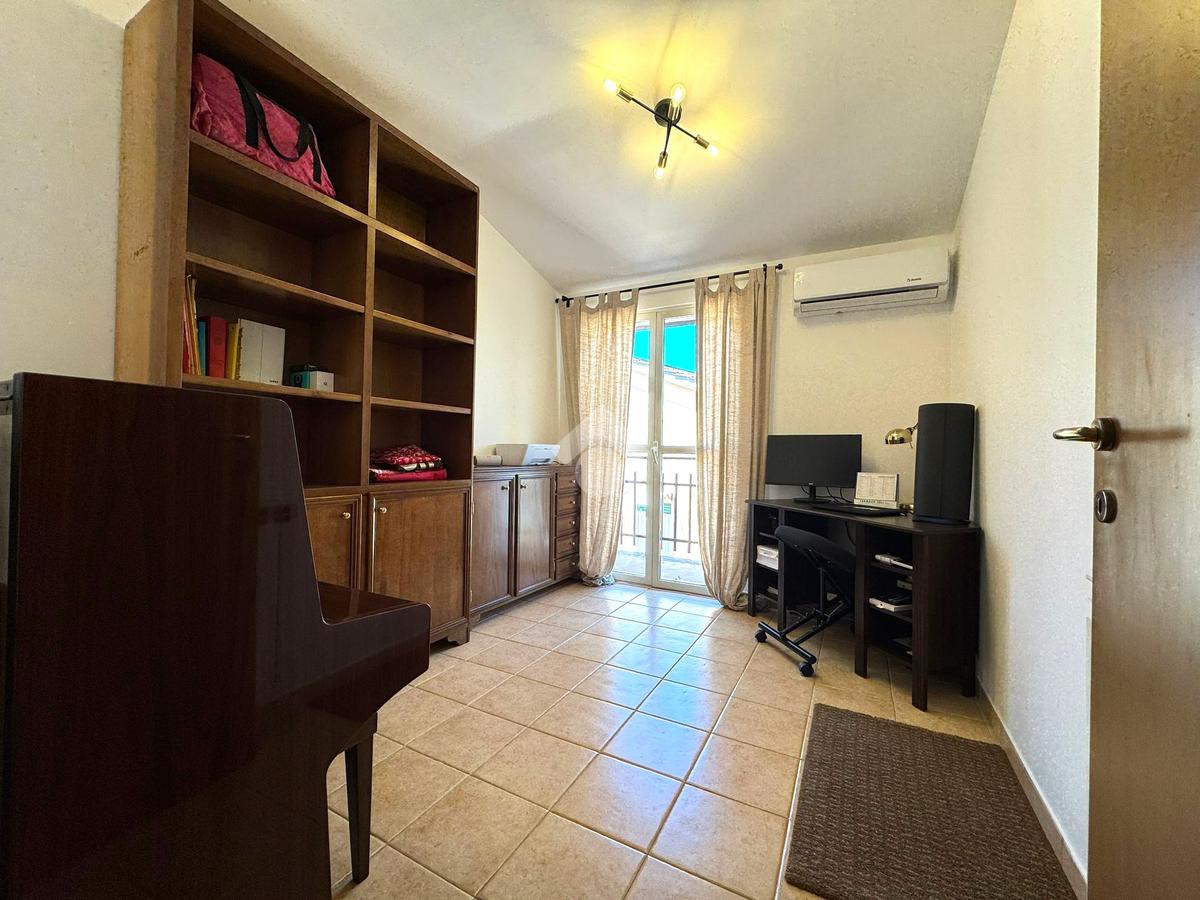 La zona notte è ben separata e raggiungibile tramite un comodo corridoio, dove troviamo una cameretta e una spaziosa camera matrimoniale, entrambe luminose e ben arieggiate. A completare la proprietà un bagno finestrato con box doccia e un pratico ripostiglio.